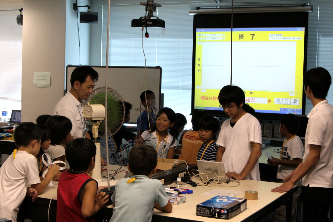 平成21年8月19日(水),いの町夏休みこども教室「おもしろ科学教室」「地球を救え!風力発電機をつくろう!」を開講しました. プログラムの内容として,自分でデザインしたプロペラと小型モーターによる風力発電模型を作製して風力発電実験を行いました.