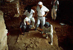 1993年夏、西アジア、シリア北部「デデリエ洞窟」の5万年以前の地層から顔を出した約二歳のネアンデルタール幼児骨である。両腕を伸ばし、仰向きの姿勢であらわれた。洞窟を発掘すると、石器や動物骨が必ずみつかるものである。子供を埋めていた周りの地層からは石灰岩の自然礫以外に遺物はほとんど見つからなかった。死体にかぶせる土は精選されたものだったのであろうか。また頭の側の平らな石と子供の心臓部でみつかった小さな石器は特別に供えられたものであろうか。