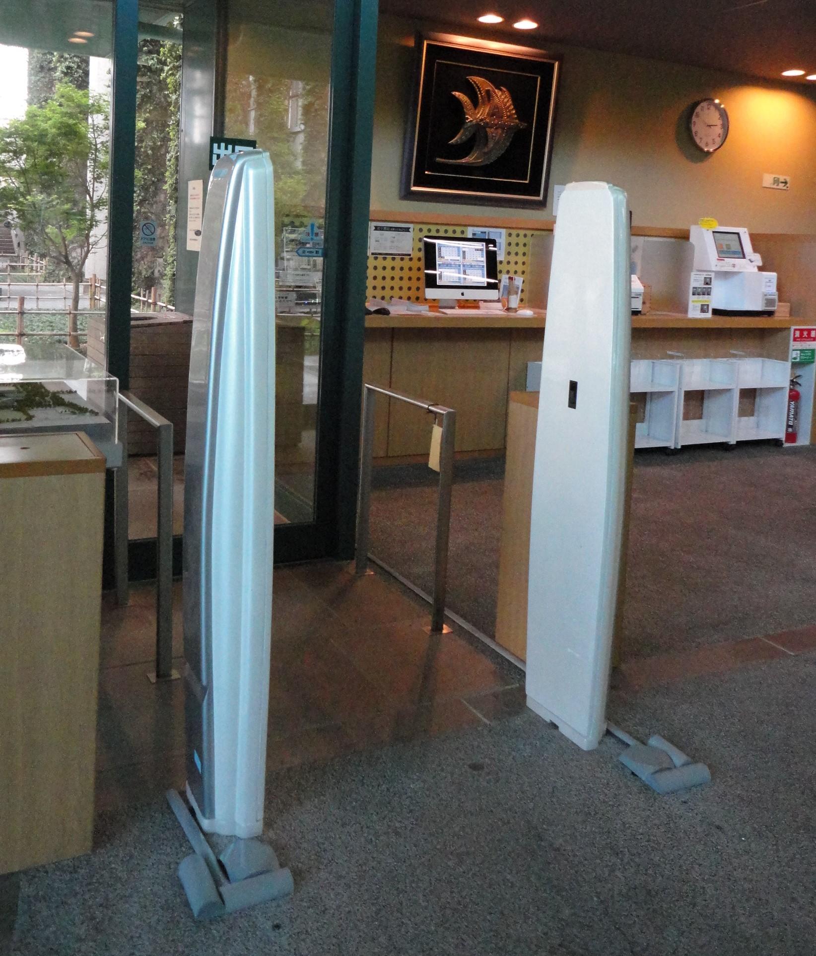 図書館利用者に対する利便性の向上や図書館業務の省力化のために、ICカードを使って図書の自動貸出・返却等を行います。出口に設置されたゲート(ブックディテクションシステム)により、図書の無断持ち出しを検知します。