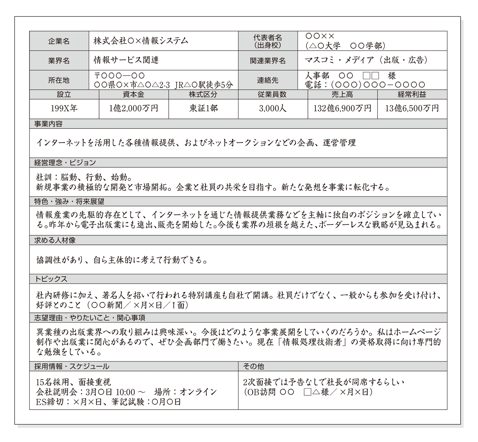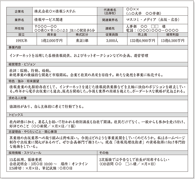 2企業研究ノートの形式