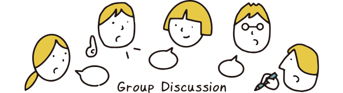 5~10人くらいのグループで一つのテーマが設定され、討議するのがグループディスカッションです。司会者も学生が務めます。グループ討議を通じて、集団のなかでの協調性や指導力が判断されます。