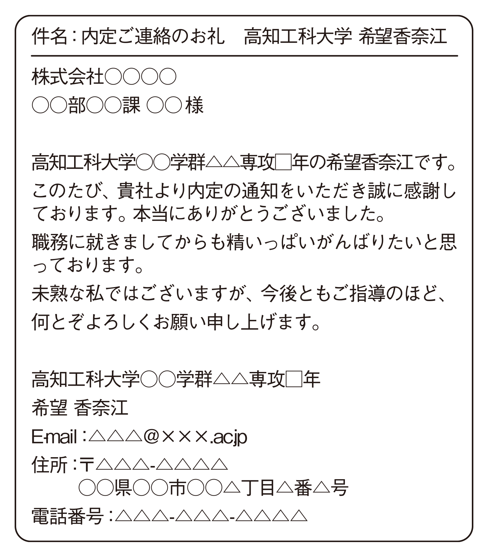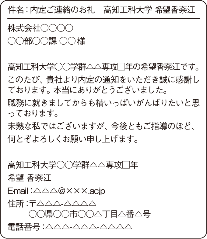 ●内定に至るまでの報告を兼ねて感謝の気持ちが相手に伝わるようにすること。