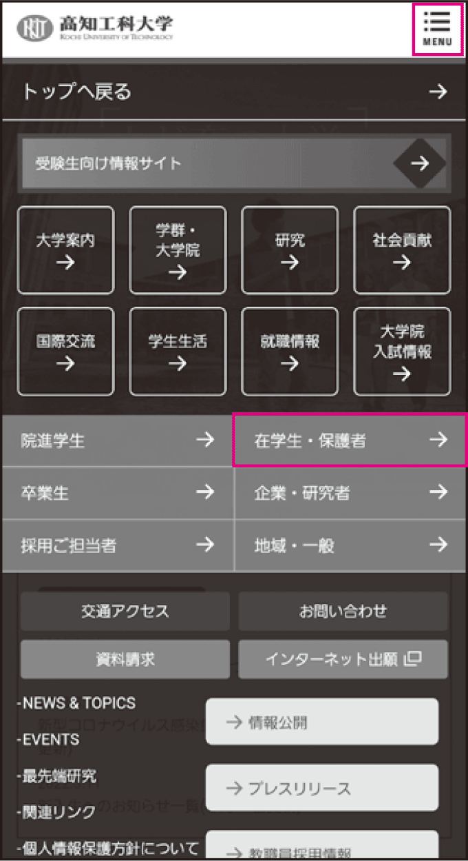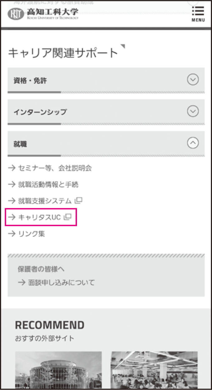 キャリア関連サポート内の「キャリタスUC」をクリック