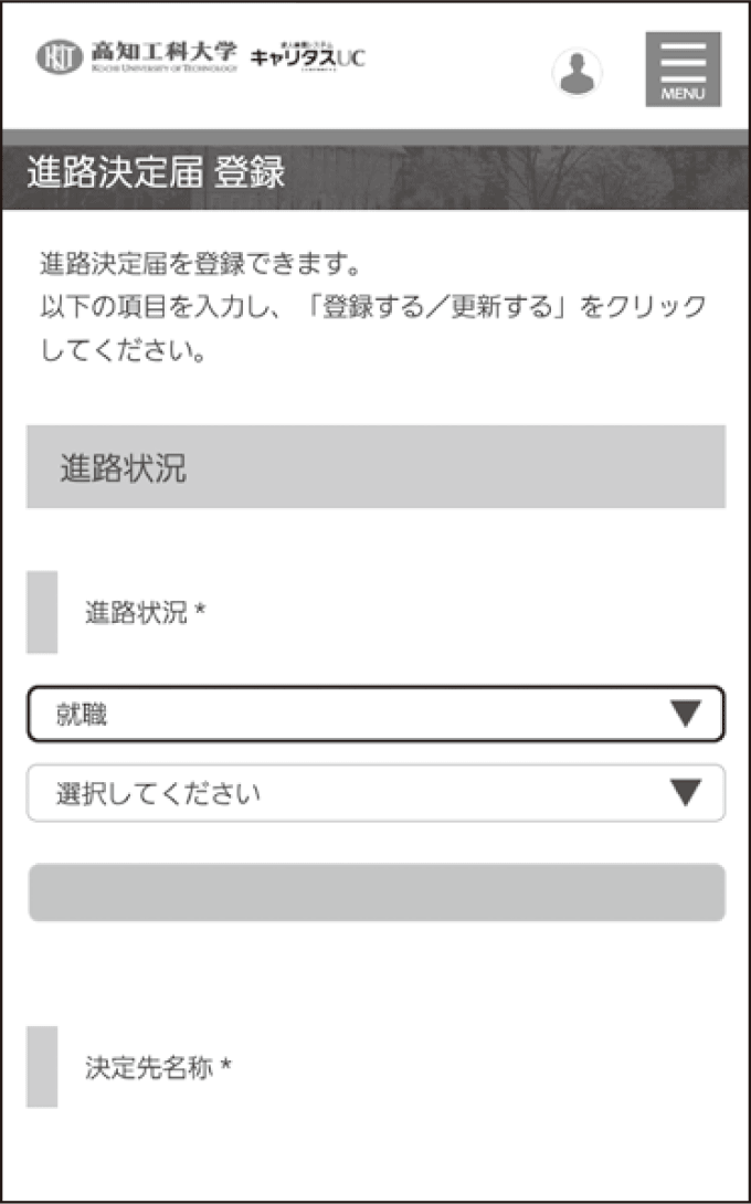 就職活動を終えたら、キャリタスUCより進路の登録と就職活動の報告を行ってください。