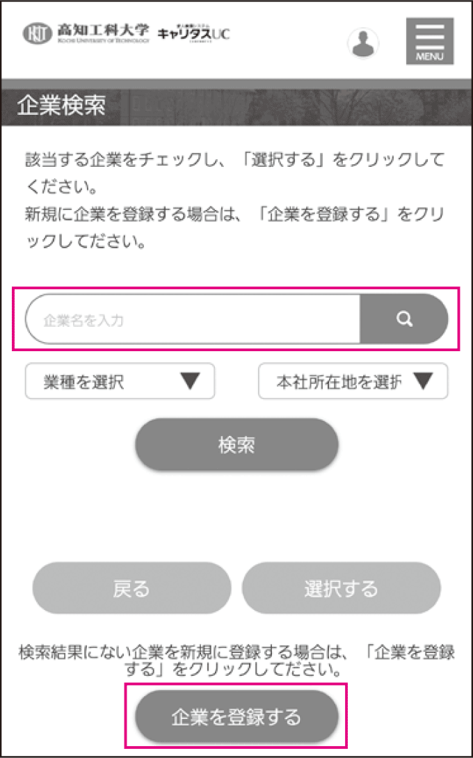 決定先名称(就職先企業)は、必ず企業検索から選択してください。検索しても出てこない場合のみ、「企業を登録する」から企業登録をお願いします。