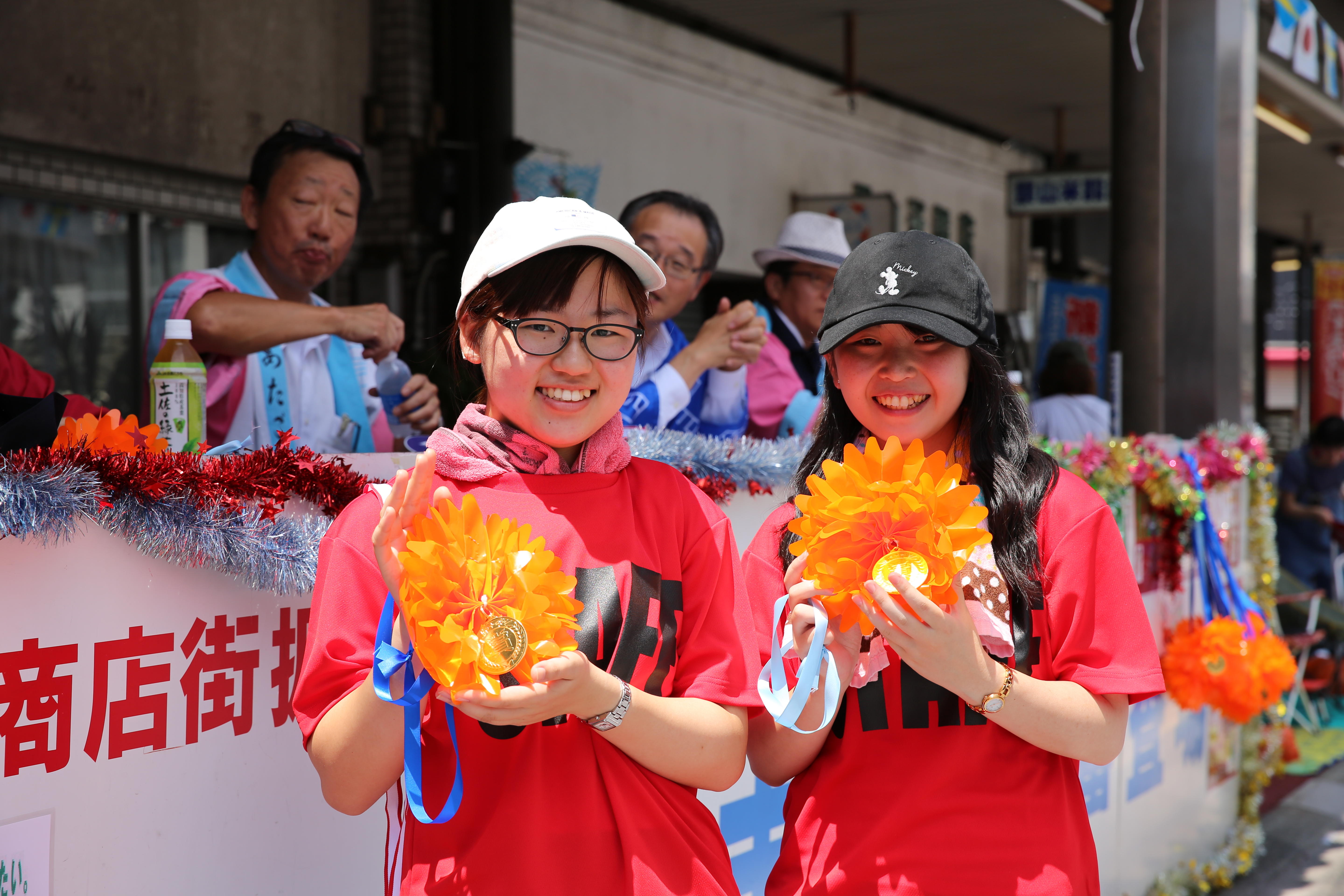 同商店街の課題に向き合い活性化に取り組む彼らは、8月10日・11日に開催された「よさこい祭り」でも、競演場運営側の人手不足問題等を抱える商店街の方々とともに踊り子に贈られる花メダルを作成したり、競演場や給水所の運営に参加しました。