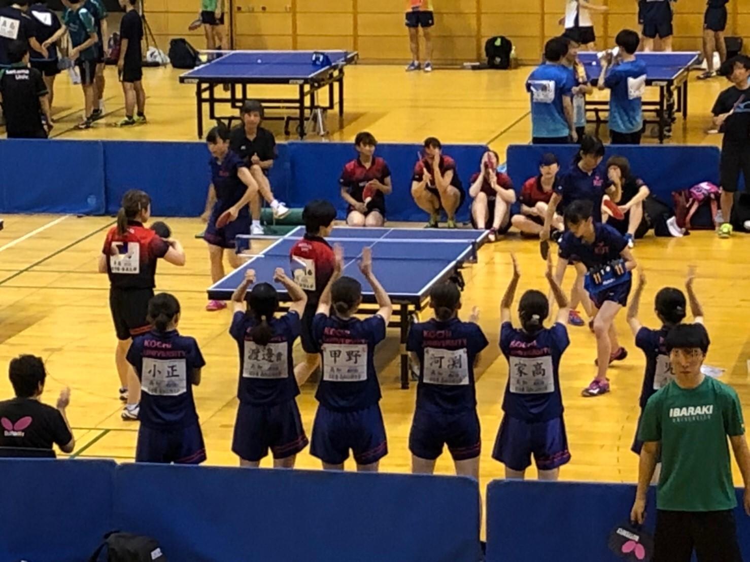 本大会では、全国の国公立大学チャンピオンを目指し総勢1400名を超す選手が熱戦を繰り広げました。 授業の合間を縫って練習量を確保するなど部を挙げて文武両道に励む卓球部は、連覇校というプレッシャーを日頃の練習とチームワークではねのけ、王者らしい自覚と気迫溢れる戦いぶりを見せました。
