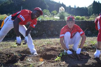 (1枚目:前田 和範講師、2枚目:農業に汗を流す高知ファイティングドッグスの選手たち ©高知ファイティングドッグス球団)