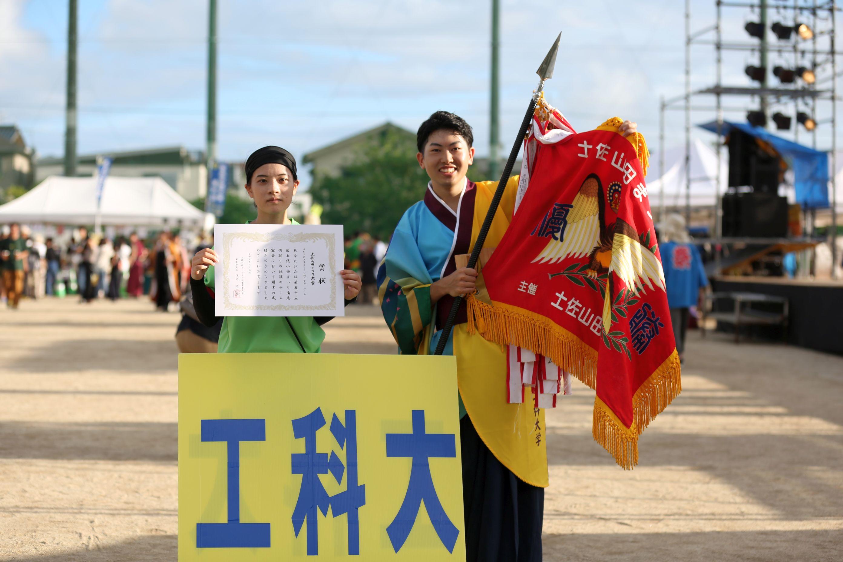 8月5日、香美市土佐山田町で第55回土佐山田まつりが4年ぶりに通常開催され、「高知工科大学よさこい踊り子隊」約70名が今年初の演舞を披露、笑顔と若さ溢れる踊りで「土佐山田まつり大賞」を受賞しました。
