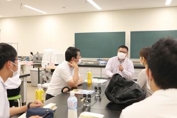 今回は、本学の濱口 猛智客員教授が「DXの最前線―デジタル化からデジタルトランスフォーメーションへ―」をテーマに講話、全てのテーブルに着席し、参加者と談笑を交えながらDX ・AIの現在、今後の展望について議論しました。