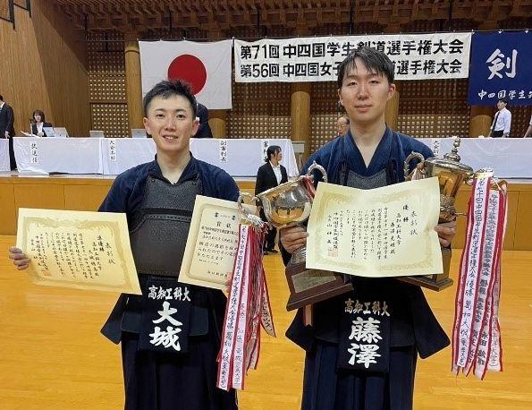 5月19日に愛媛県武道館で開催された「第71回中四国学生剣道選手権大会」において、剣道部の藤澤 克明さん(経済・マネジメント学群 2年・香川県立高松商業高等学校出身)が優勝、大城 穂高さん(経済・マネジメント学群 4年・徳島県立富岡西高等学校出身)が準優勝しました。