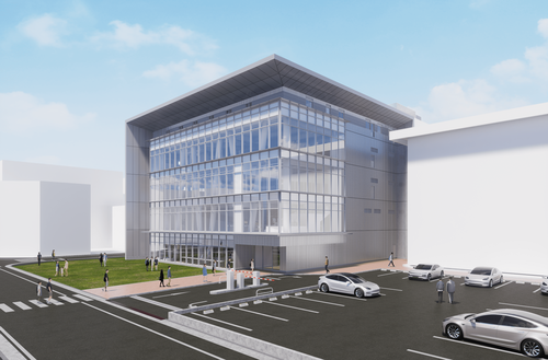 鉄骨造の地上5階建てとなる新棟は、1階には産官学・高大連携の交流の場となるコワーキングスペースや階段状のプレゼンテーションコート、2階にはPBL(Project-Based Learning,地域課題解決型学習)の拠点となる討議スペースなどが設けられ、多様な交流を通じてイノベーションが花開く空間となります。2026年2月完成、同年4月より使用開始予定です。