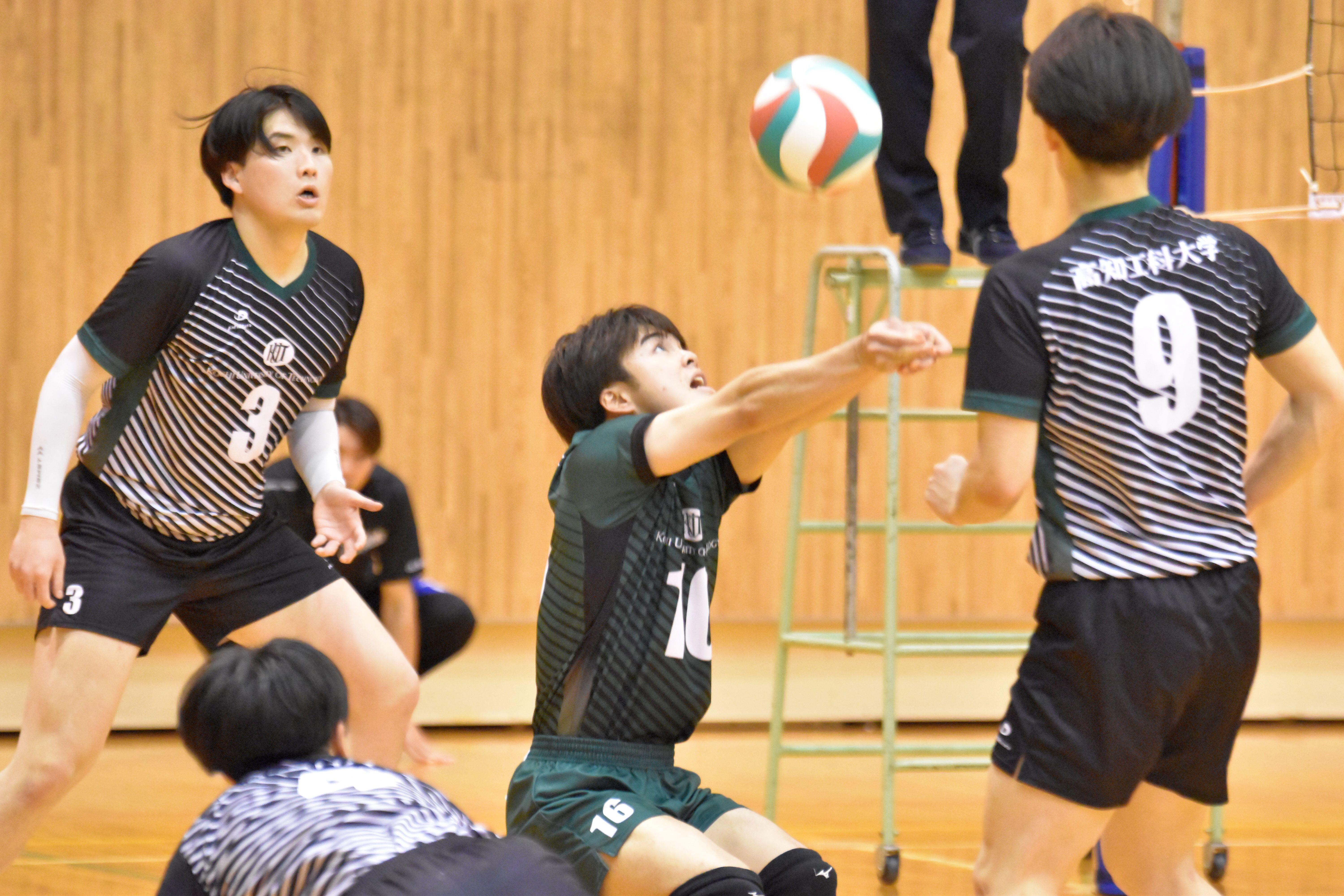 参加校17校のうち予選グループ戦を突破した13校で決勝トーナメントが行われました。本学の男子バレーボール部は、強豪チームに比べて部員数が少ないため、選手の入れ替えが難しい中、全員が活躍する「総力戦」で勝利を重ねました。準決勝では、この大会の優勝常連校を相手に取って取られての展開で、何度も劣勢を跳ね返して勝ちをつかみ取り、創部以来初の決勝進出。見事な戦いを見せました。