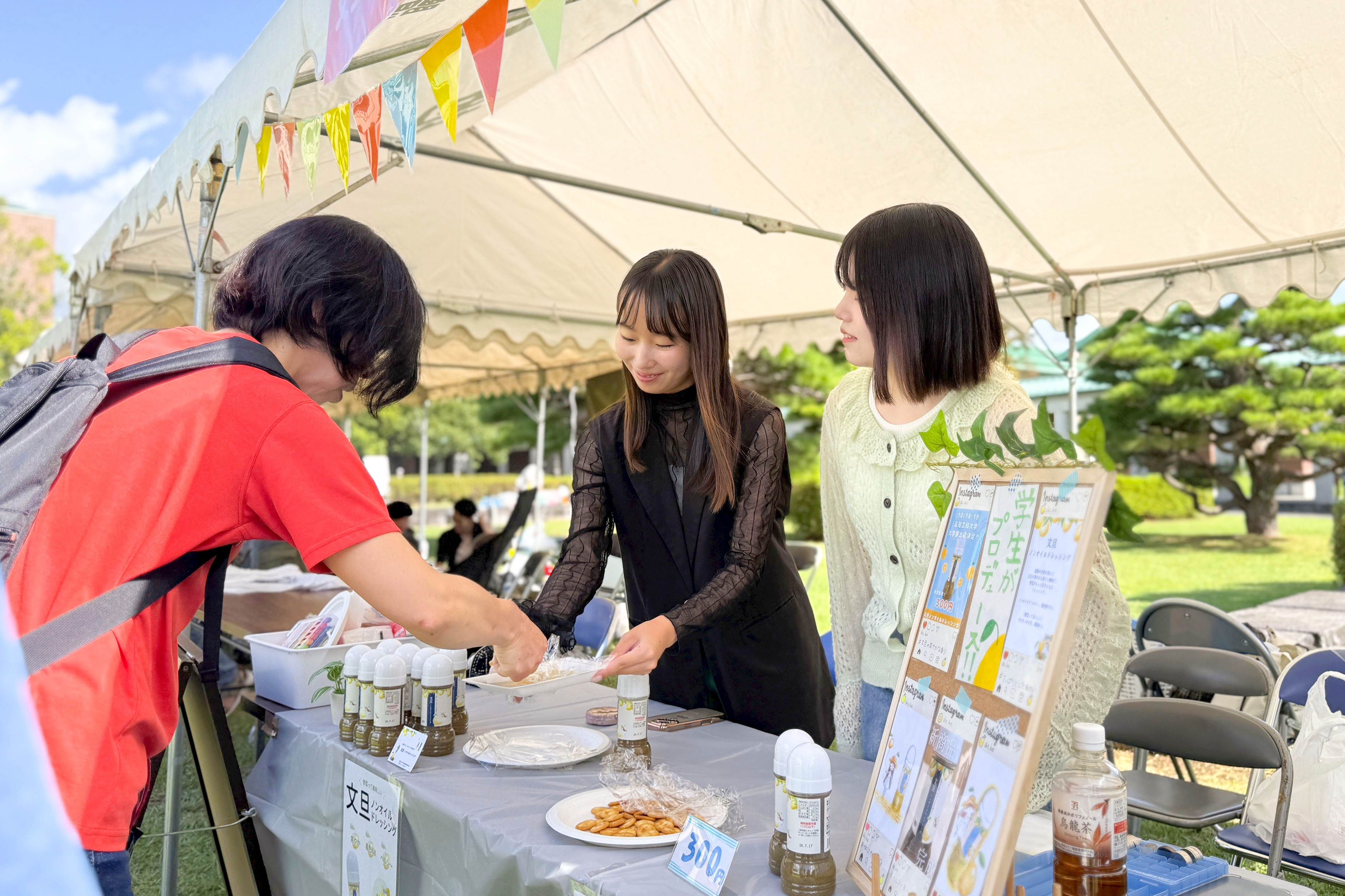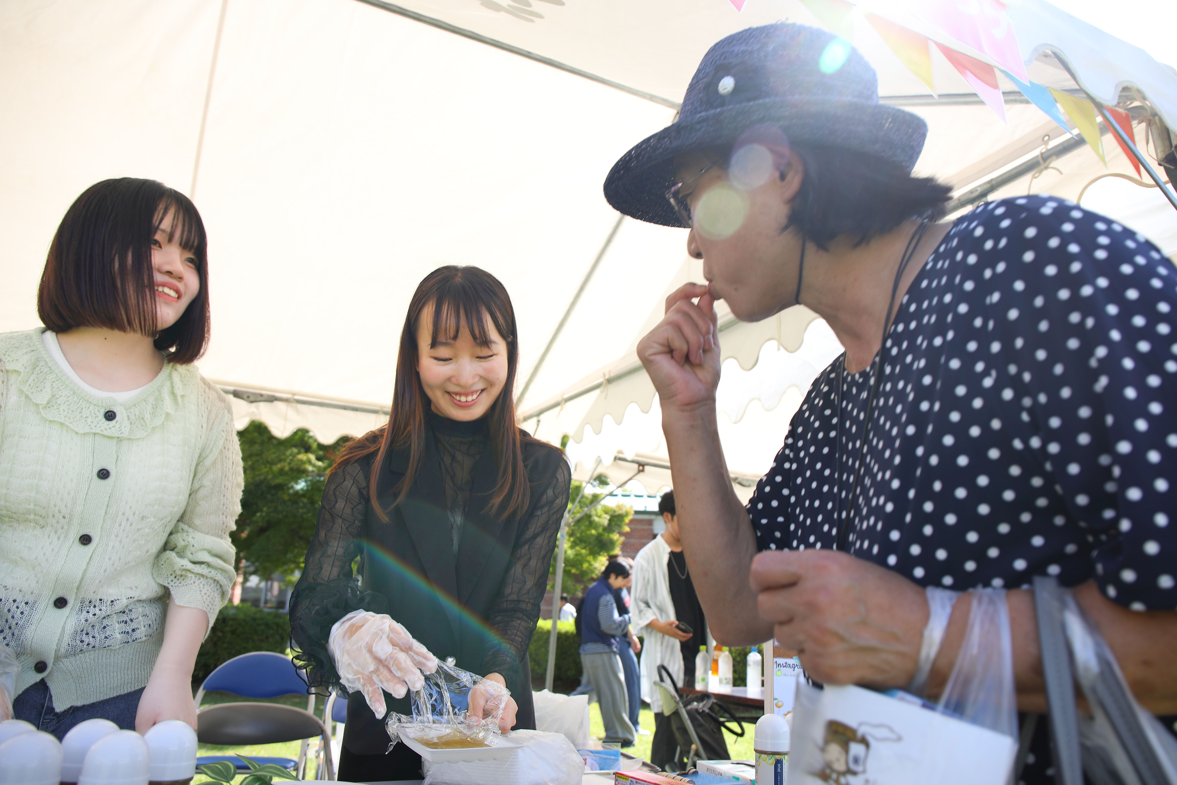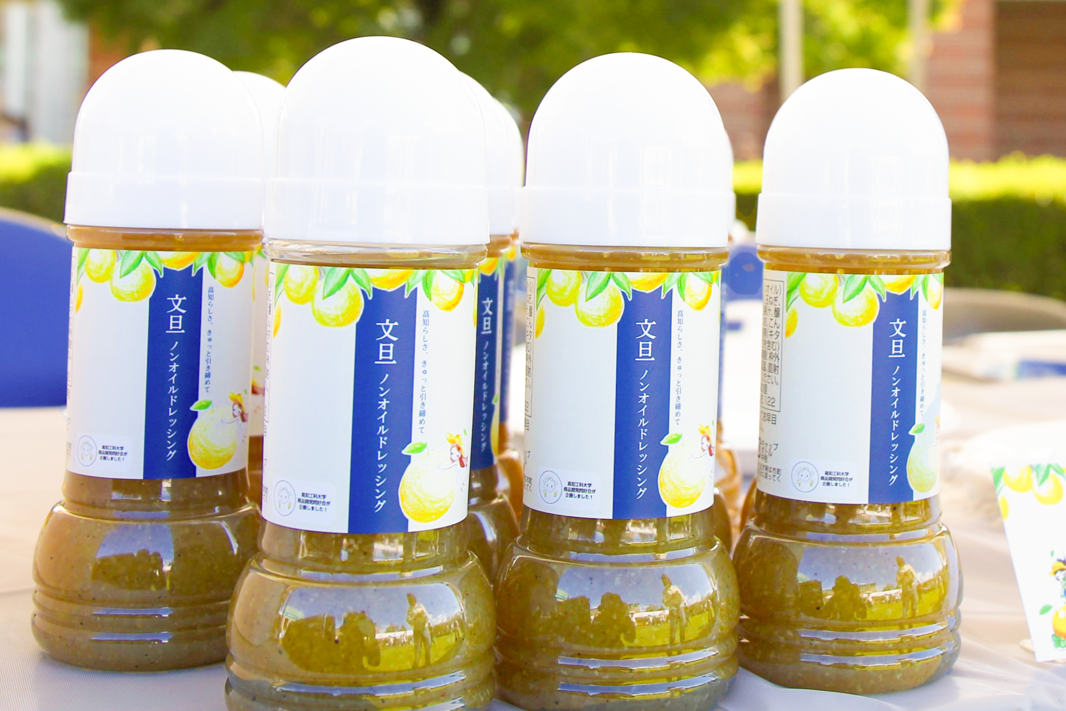 商品開発同好会が6月から企画を始めた「文旦ノンオイルドレッシング」が完成し、10月18・19日に行われた大学祭「Flying Fish Festival 2025」で初めて販売しました。
