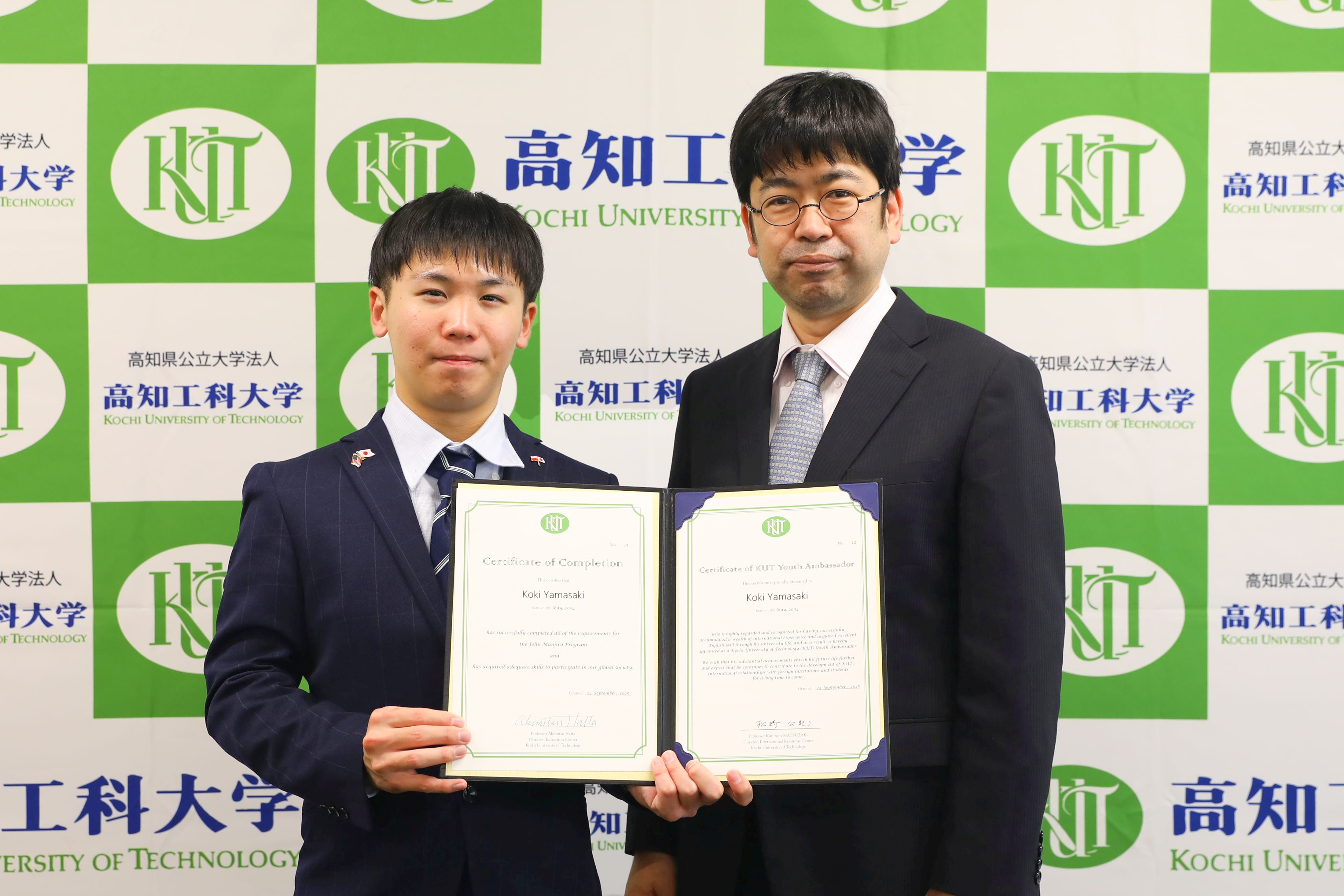 山﨑 光稀さん(経済・マネジメント学群 3年/高知県立高知西高等学校出身)が第12号のKUT Youth Ambassadorに任命され、12月17日に任命式が行われました。