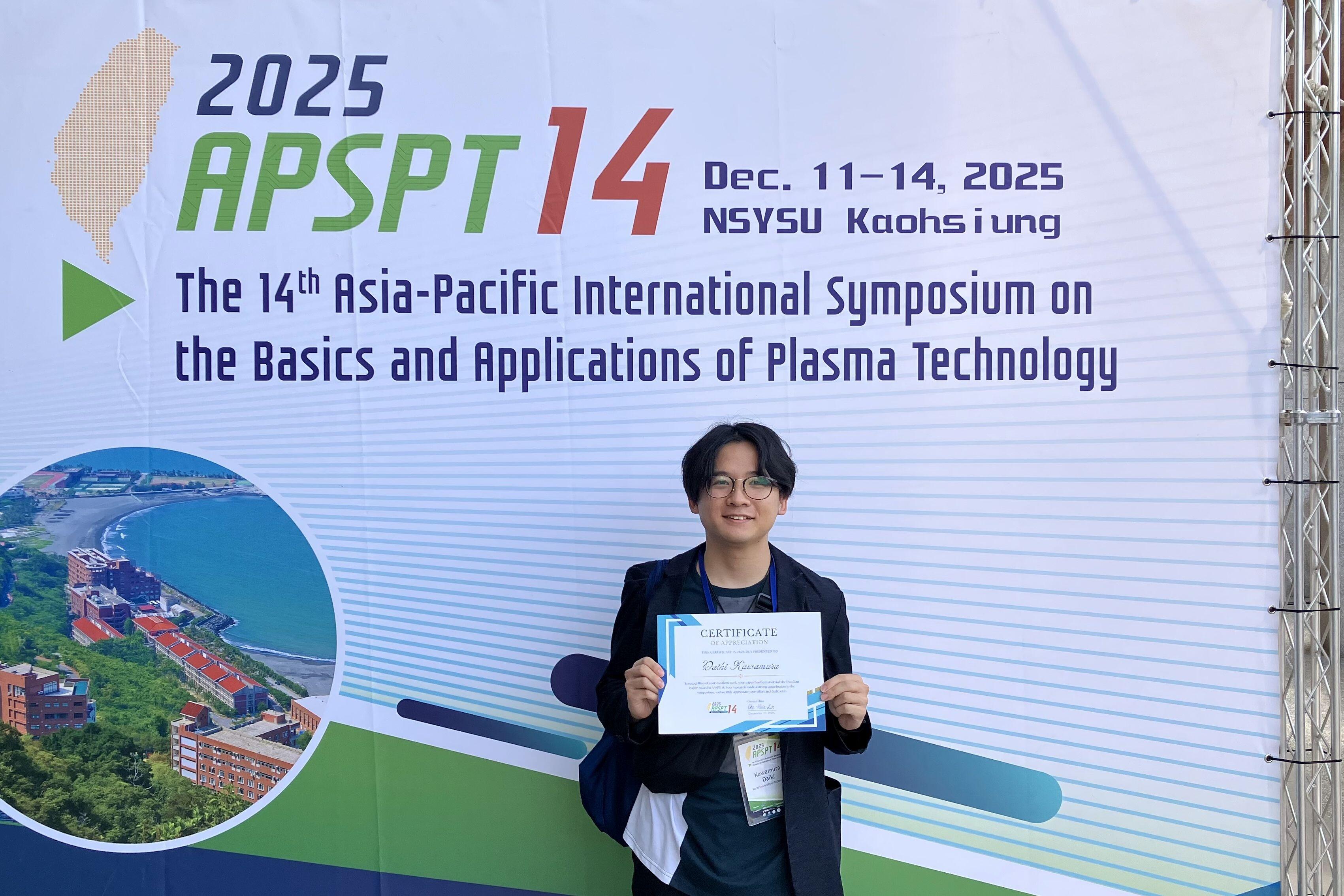 12月11~14日に台湾で開催された「The 14th Asia-Pacific International Symposium on the Basics and Applications of Plasma Technology」(APSPT-14)において、川村 大樹さん(システム工学群4年/指導教員:プラズマ応用研究室 八田 章光教授)がExcellent poster awardを受賞しました。