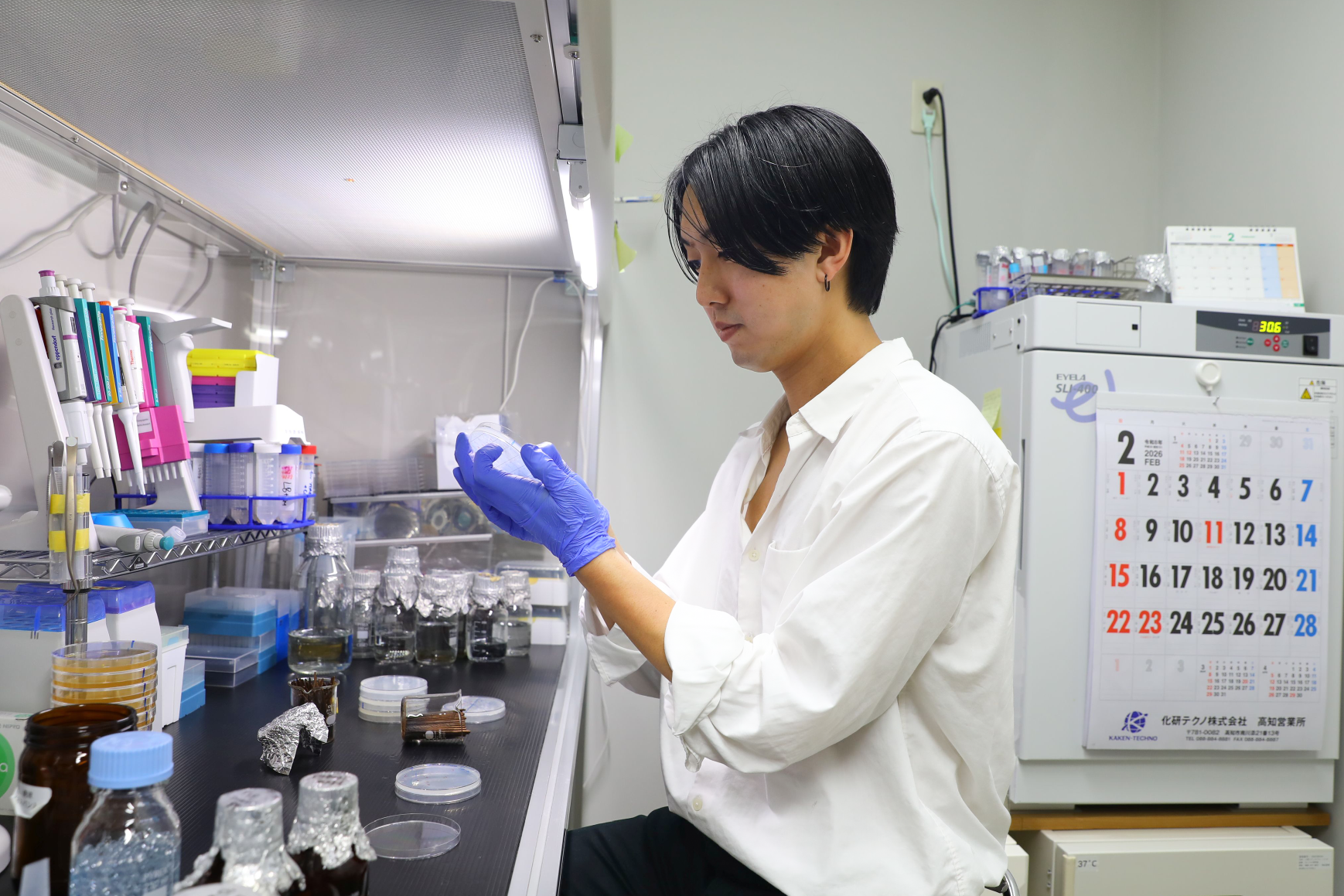 受賞を受けて、鳥山さんは「このような賞を受賞できて、大変喜ばしく感じています。日頃からご指導いただいている田中先生、ご指導いただいた小川 志帆先生(現:関西学院大学)、研究室のメンバーに感謝しています。研究成果の最たるかたちは論文だと考えていますので、この研究を論文にまとめられるよう頑張ります」と話しました。