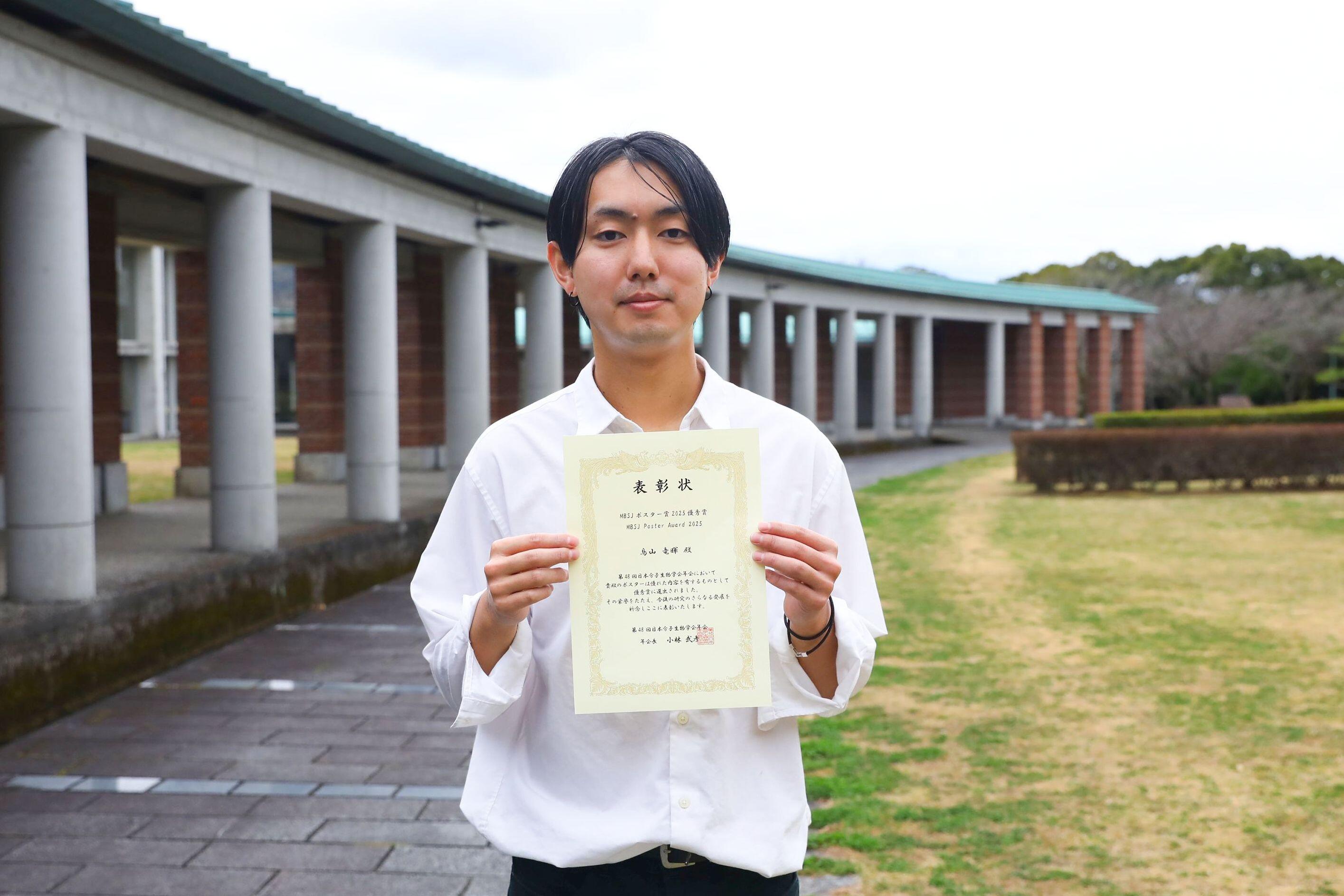 12月3~5日にパシフィコ横浜で行われた「第48回 日本分子生物学会年会」において、鳥山 竜暉さん(博士後期課程 基盤工学コース3年/指導教員:細胞増殖制御研究室 田中 誠司教授)が、ポスター賞である「MBSJ Poster Award」を受賞しました。