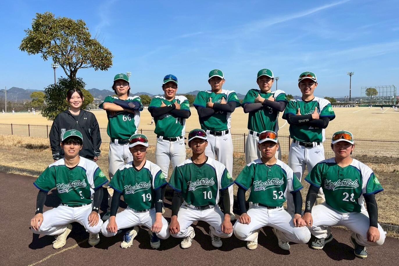 前キャプテンの菅 雪陽さん(経済・マネジメント学群 4年/兵庫県立龍野高等学校出身)は、「昨年、インカレと西カレで私立大学の好投手から点を取ることができず負けたという結果から、今冬バッティングを重点的に取り組みました。その甲斐あってか個人個人で良い結果に結び付いた選手が多く、とくに新2年生達に実践の中で成果が出たことが、チームにとっても本人にとっても良い事でした」と胸を張ります。